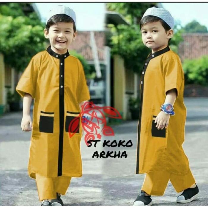 Setelan Koko Anak Laki Laki Muslim Baju Gamis Syari Kids Remaja Kunyit Xs