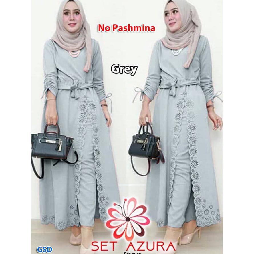 Promo Set Azura Abu Setelan Celana Maxi Dress Baju Gamis Busana Muslim Terbaru