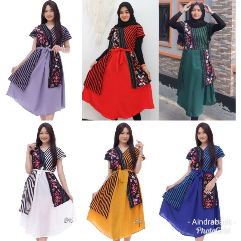 Aindra Batik Pekalongan Dress Ayamia Ikatan Cinta Andin Amanda Manopo Motif Tenun Songket