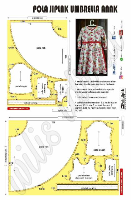 Pola Jiplak Gamis Umbrella Anak 2 12thn Di Pola Baju Dan Tailor Tokopedia
