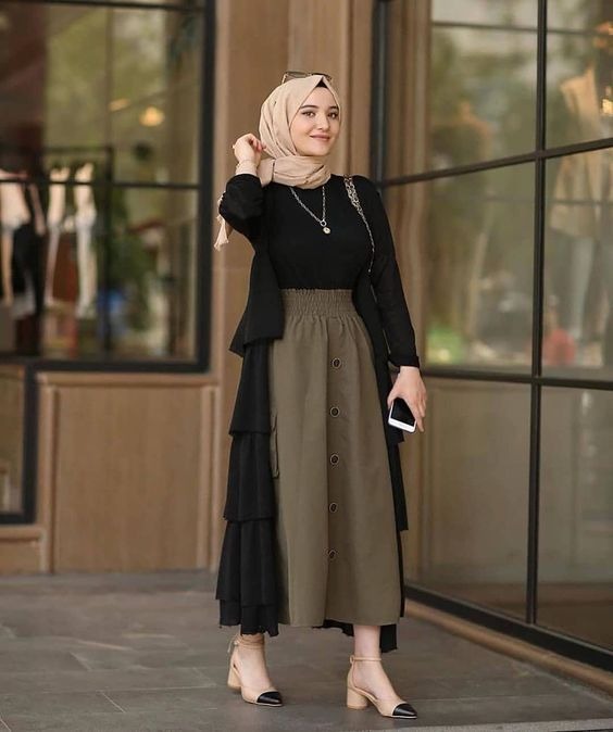 Padukan Hijab Hijau Army Dengan 3 Warna Baju Ini Bikin