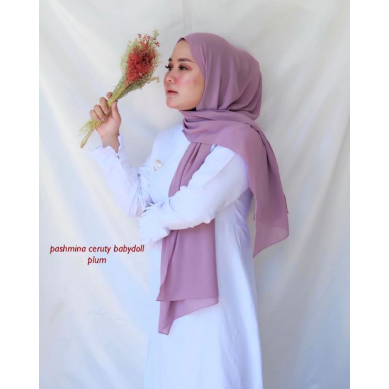 Promo Pashmina Plisket Ceruti Baby Doll Original Import Ukuran 175 X 75 Bahan Berkualitas Hijab Ceruti Pashmina Ceruti Babydoll Kerudung Pashmina