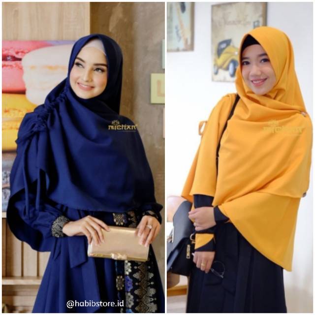 Khimar Kiara Michan Kerudung Instan Royal Wollycrepe Navy Biru Dongker Mustard Kuning Kunyit