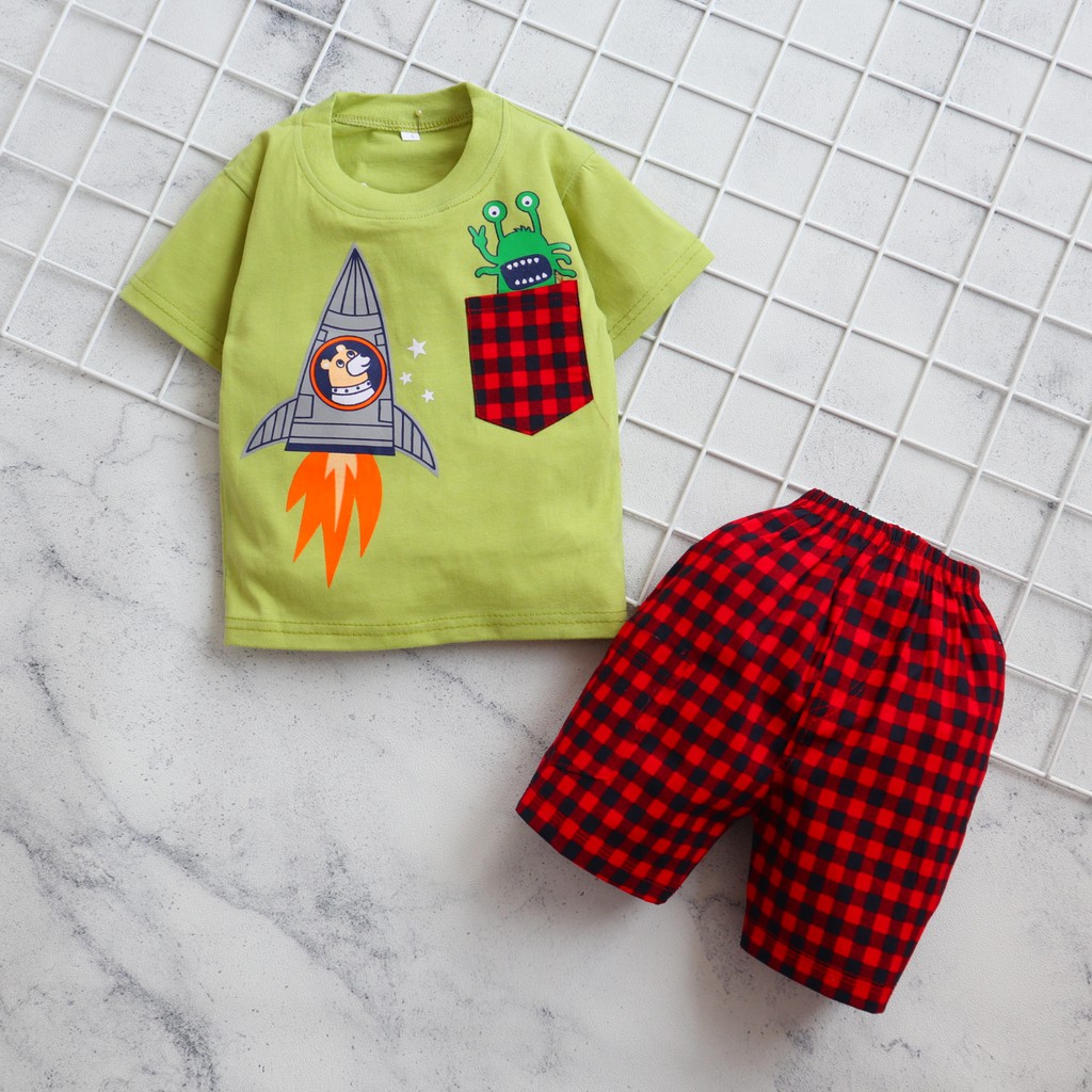 Imk Motif Astronot Kotak Setelan Baju Bayi Usia 6 Bulan 3 Tahun Baju Anak Laki Laki
