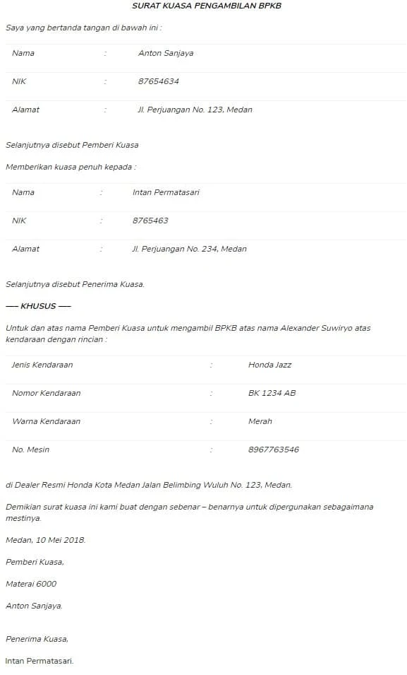 34 Contoh Surat Kuasa Pengambilan Bpkb