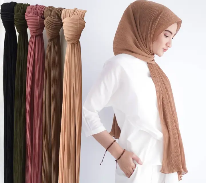 Jual Kerudung Pashmina Plisket Murah Harga Terbaru 2021