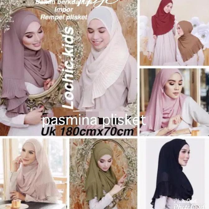 Pashmina Plisket Ori Terbaru 2021 Tidak Ada Jahitan Tengah Jilbab Pashmina Plisket Ori Ceruti Panjang Tebal Full Plisket Kerudung Pashmina Plisket Ori